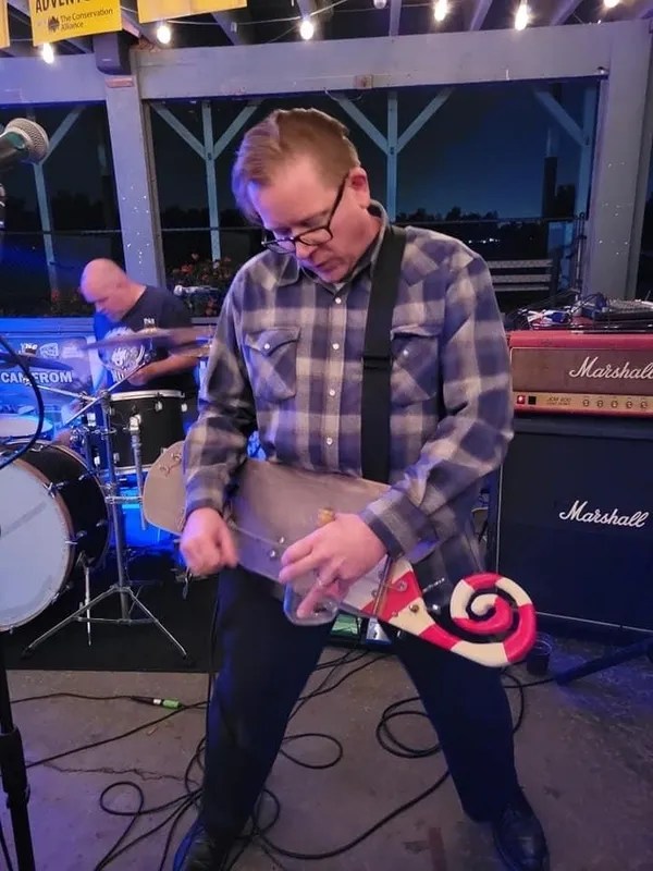 The band has been in existence since 1999. It started off as a bloody battle of conceptual art of homemade instruments made from found objects. It has gone through many other stages, but is now a more polished skate punk band consisting of a skateboard guitar, a drum kit, and two unusual suspects. If you like goofy/quirky punk rock and bands that don’t sound like anything else; well then, you’ll dig Punk As A Doornail! Keith and John are enthusiasts of the early California punk scene, when every band sounded different from each other. The early punk bands in this scene created their own personality that could be heard directly through the tone of their music.