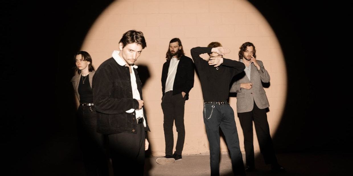 Frontman Griffin Bush says many early Social Cinema songs existed primarily as material to fill setlists at their shows, which, for their part, have been the band’s undeniable strength from the start. Social Cinema are a force on stage, deploying tightly wound dance rhythms in the guise of rock songs while Griffin evangelizes at center stage, arms flailing and spouting vocally like a cross between King Krule and Joey Ramone. The band’s shows have won fans over with the visceral, nothing-left-on-the-table presentation of a group that has laboriously studied the makings of a great rock show, evidenced by their inclusion on NIVA’s 2025 “Live List,” a who’s who of top emerging live acts, alongside names like Doechii, Jessica Pratt and Mannequin Pussy.